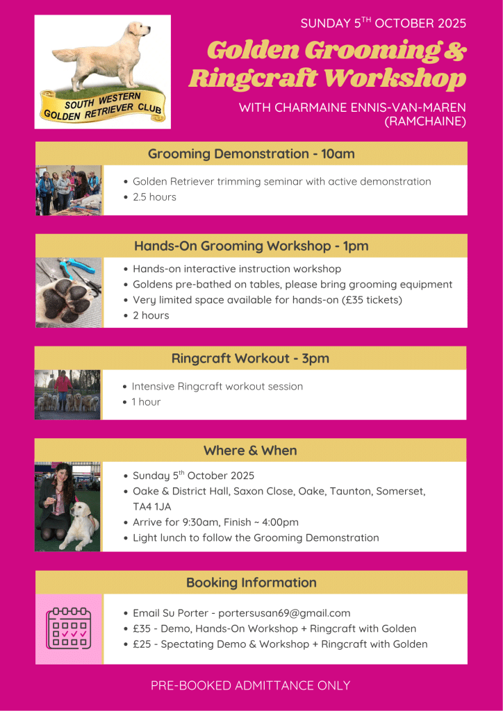 Our puppy register is now available to view at www.swgrc.co.uk./puppies & by clicking “Available Litters”. We currently have 2 litters available. Members can register their