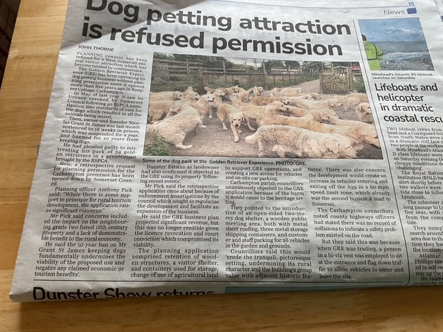 We are therefore appalled that three dogs have now been returned to the Daughter of the Golden Retriever Experience’s Owner, particularly in light of the fact that she actually was responsible for much of the day to day running of the GRE.  Please see the report in the West Somerset Free Press www.wsfp.co.uk/news/golden-retriever-experience-co-owner-defends-return-of-three-dogs-after-court-case-822154.